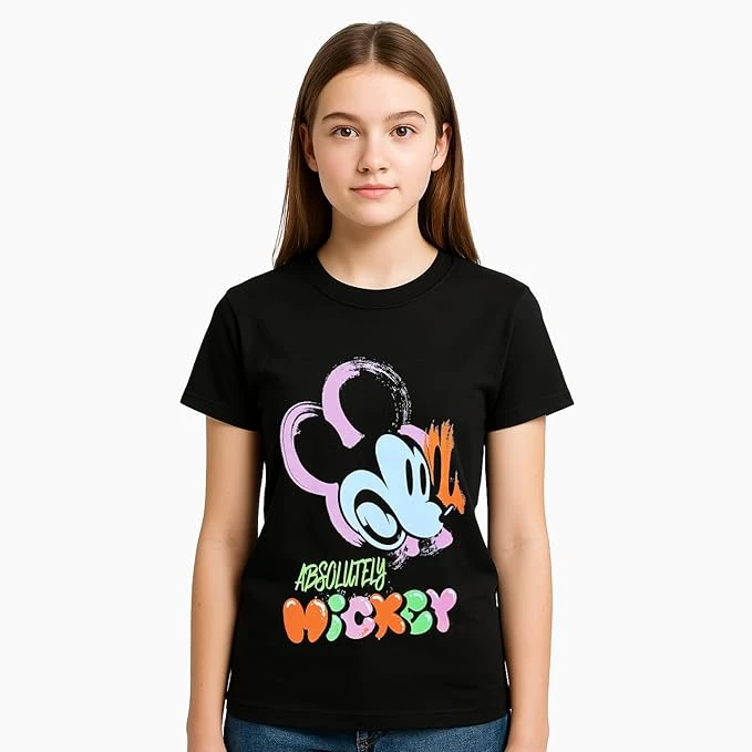 تي شيرت بطباعة ميكي ماوس وأكمام قصيرة بتصميم غربي للبنات من ديزني (عبوة من قطعة
