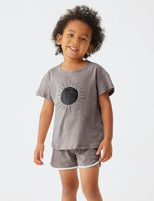 تي شيرت وشورت قطن للأطفال من الأولاد والبنات من سيور، تي شيرت بأكمام قصيرة، ملاب