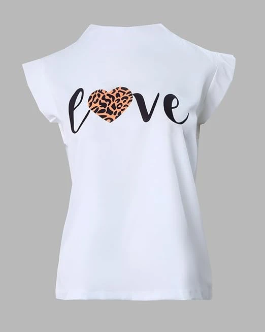 تي شيرت صيفي للنساء بأكمام قصيرة وقبة دائرية ضيقة مطبوع عليه رسومات جرافيك قميص