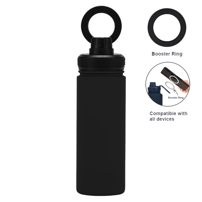 حلقة مغناطيسية للجوال: تحتوي الزجاجة على حلقة مغناطيسية مدمجة تتيح تثبيت الهاتف بسهولة، مما يجعلها عملية أثناء التنقل أو عند الحاجة لاستخدام الهاتف بدون إمساكه يدويًا