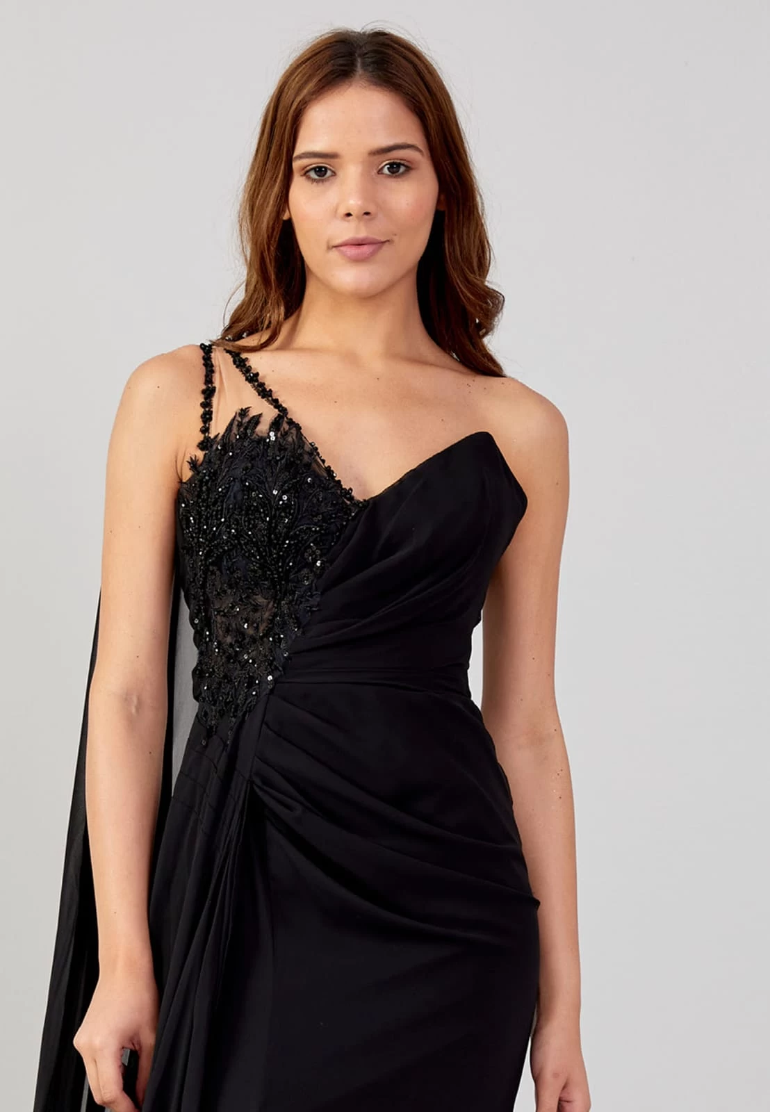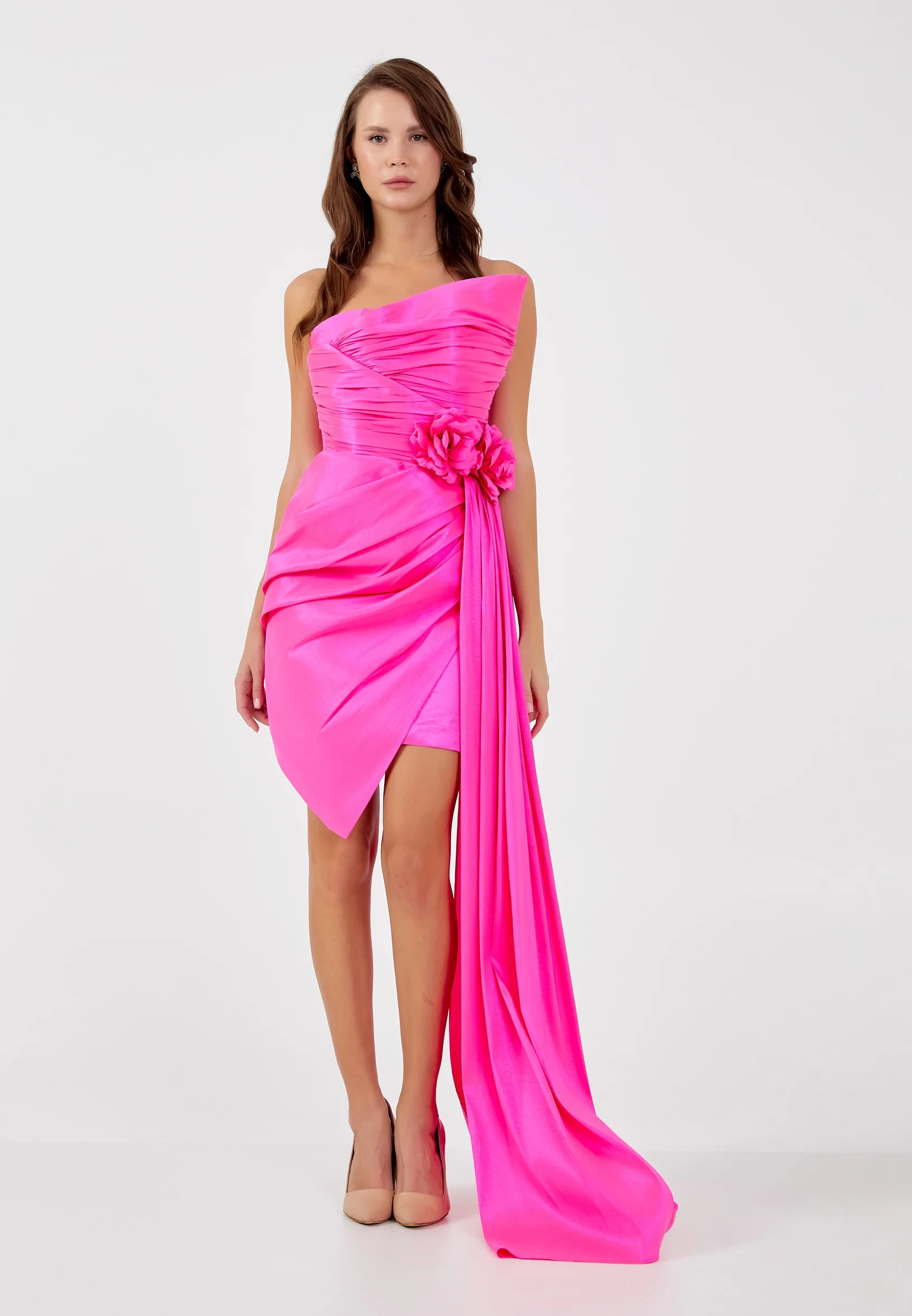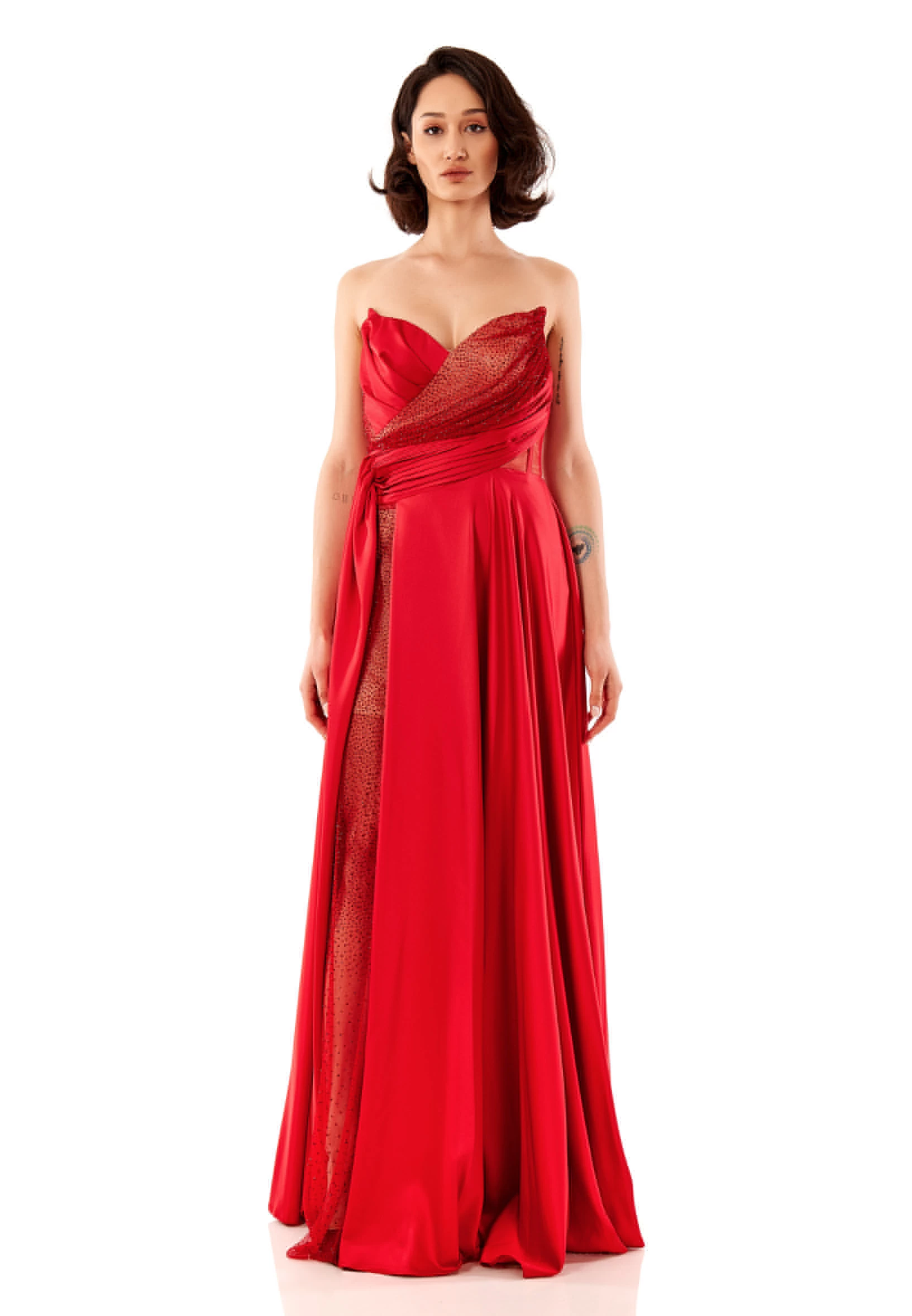 فستان سهرة بطيات على الصدر