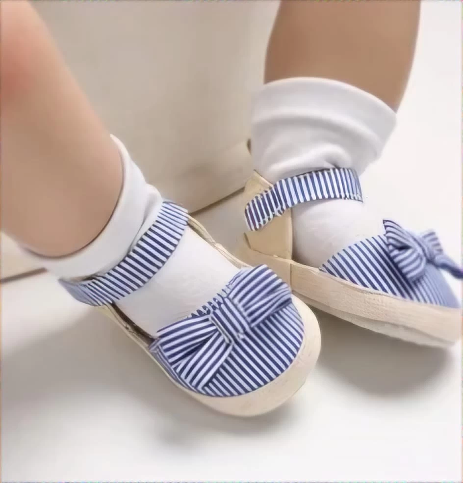 حذاء مخطط بفيونكه للمواليد البنات باللون الازرق
