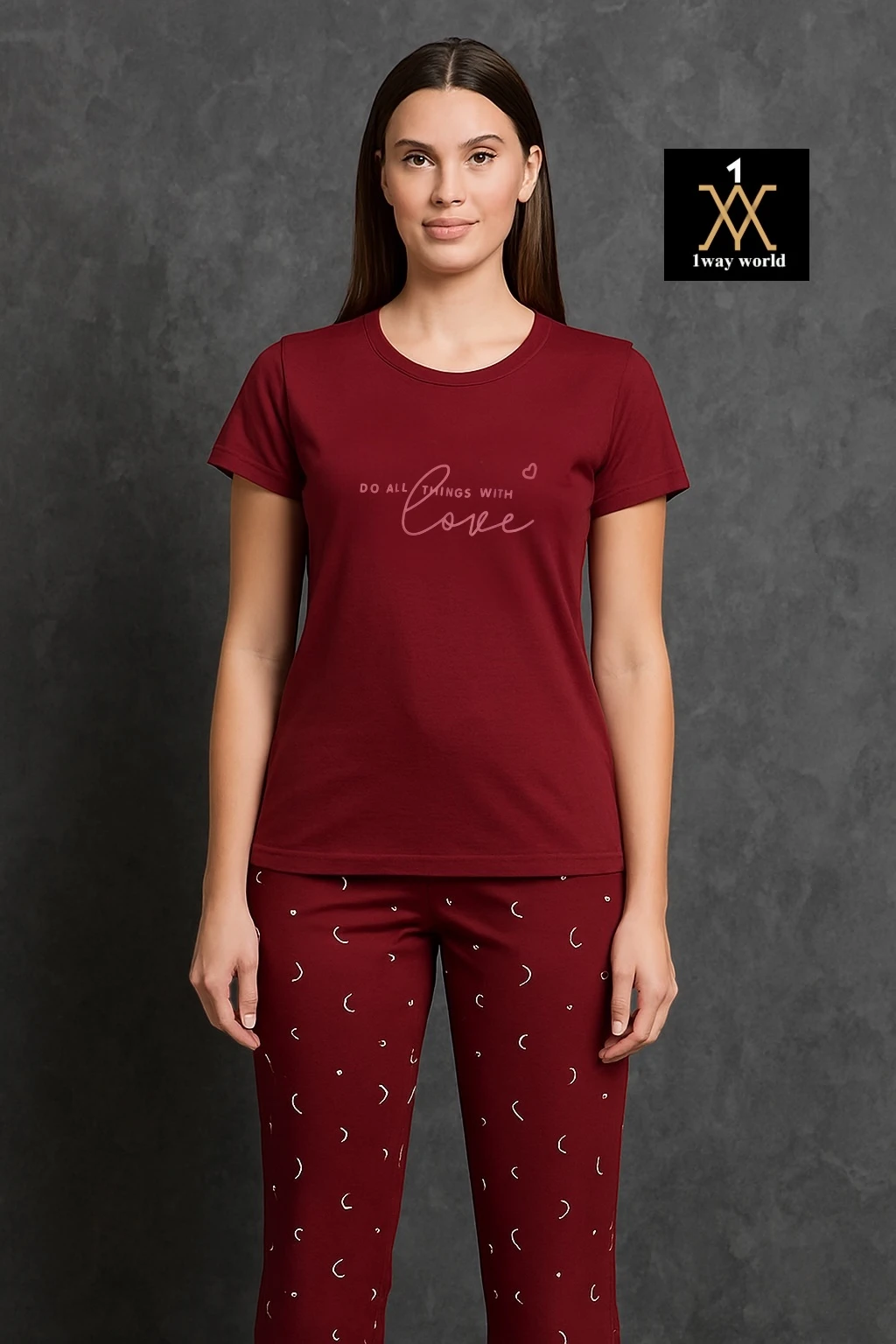 بيجامة بطبعة قلوب – تصميم مريح بأكمام طويلة