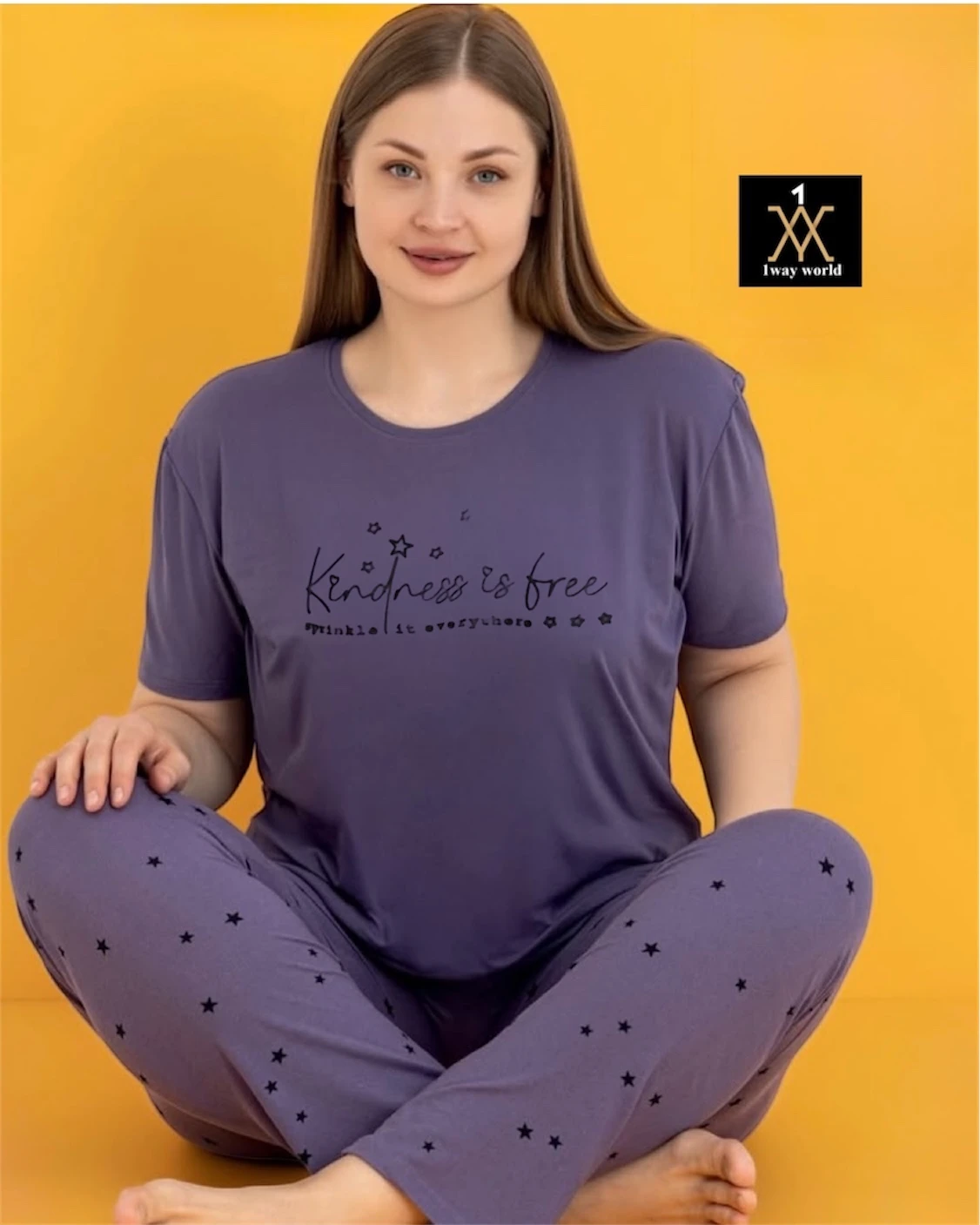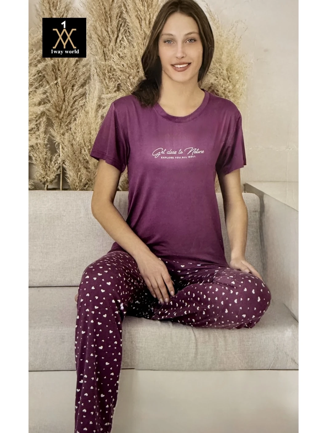 بيجامة نسائية تركية بلون بنفسجي بنقوش ناعمة