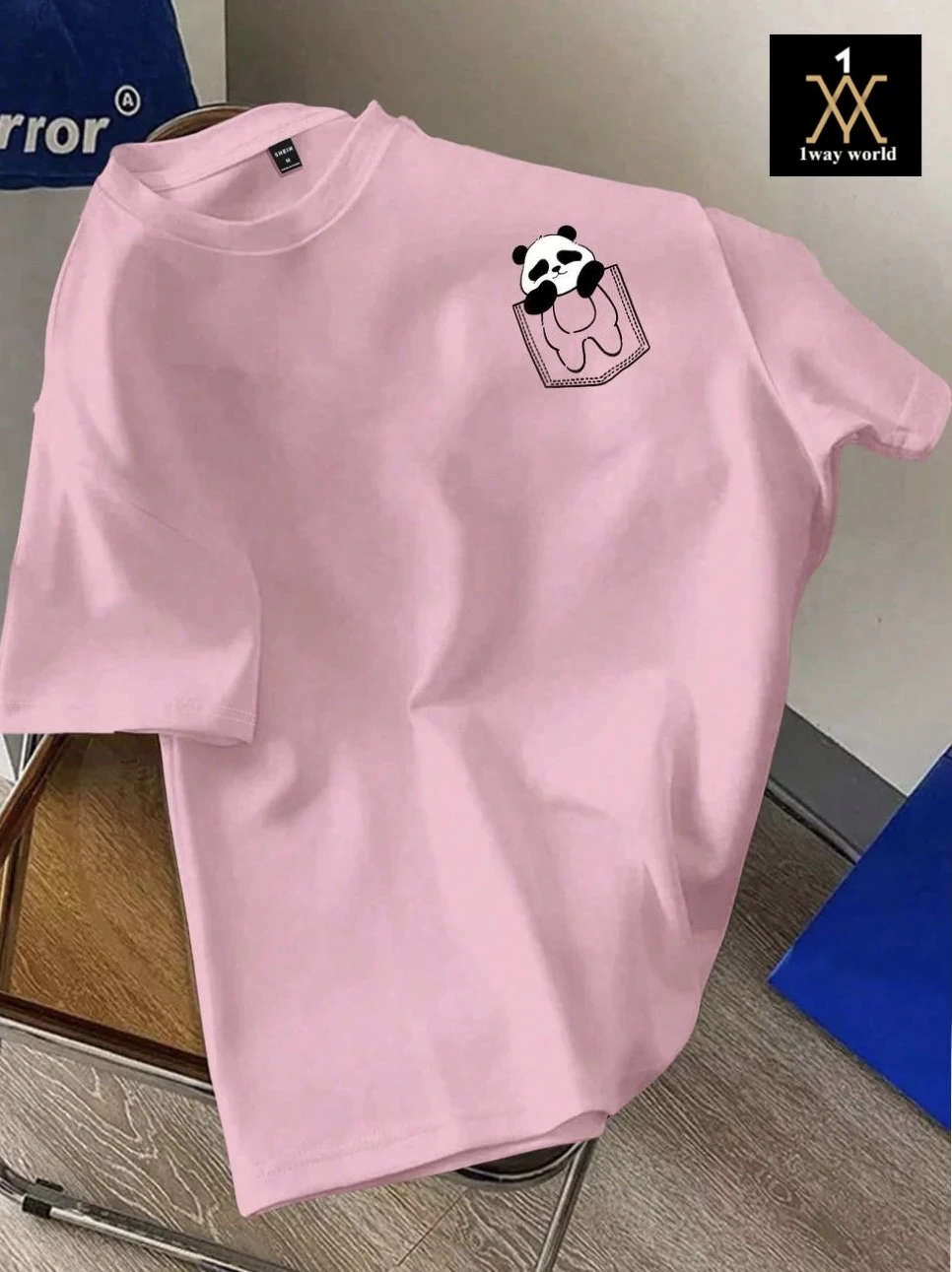 تيشيرت وردي بطباعة باندا – تصميم مرح وأناقة يومية