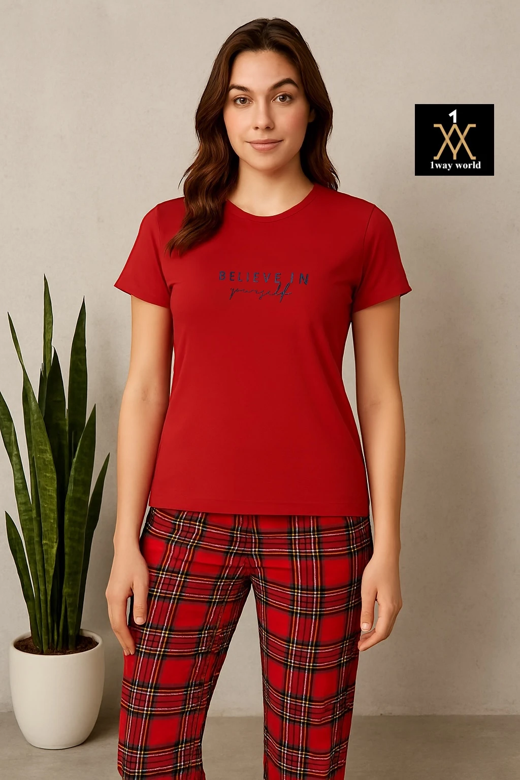 بيجامة نسائية تركية بلون بنفسجي بنقوش ناعمة
