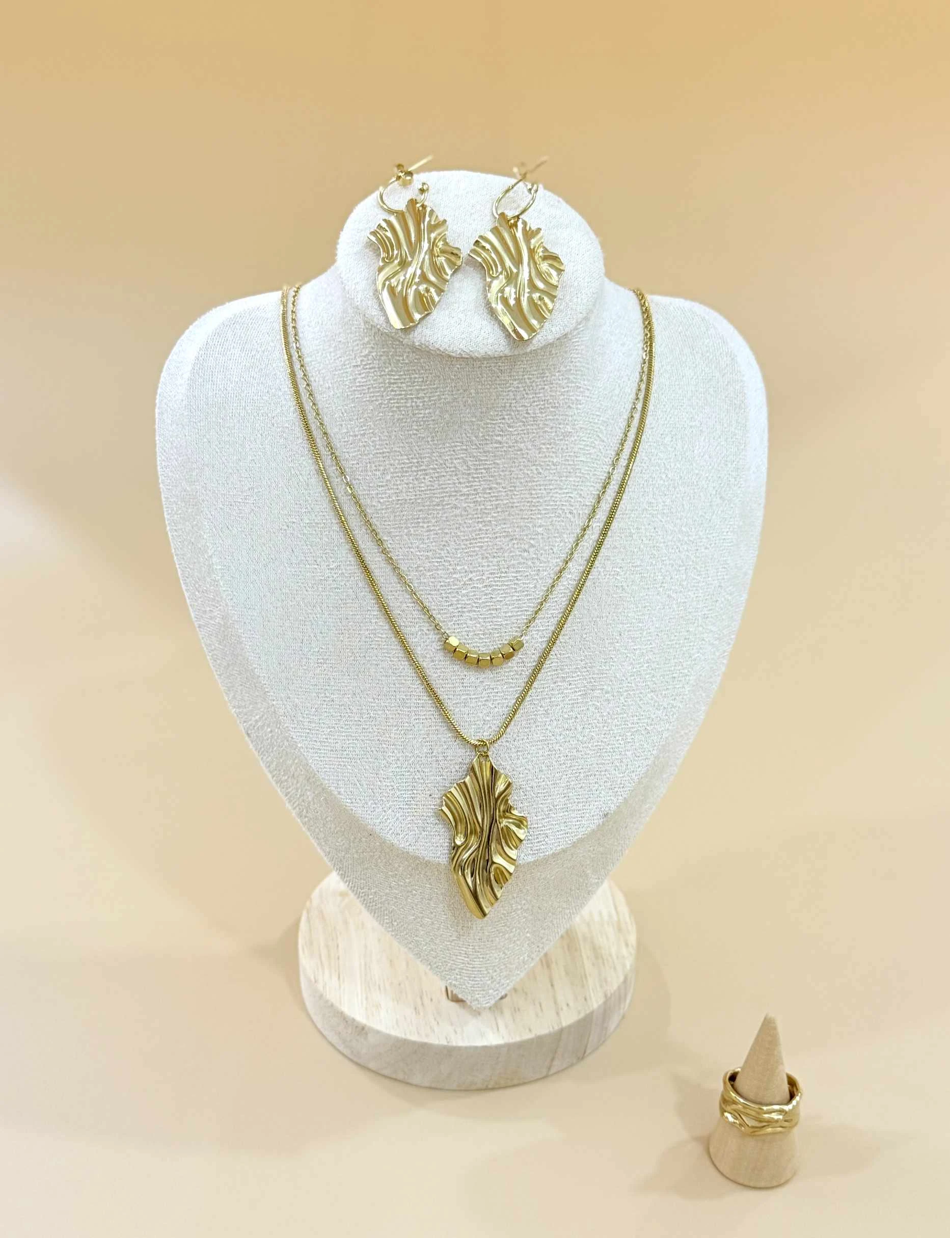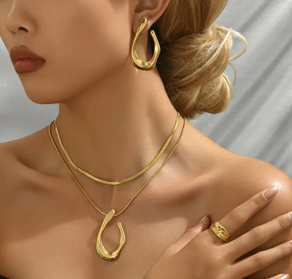 طقم إكسسوار نسائي ذهبي فاخر – ثلاث قطع