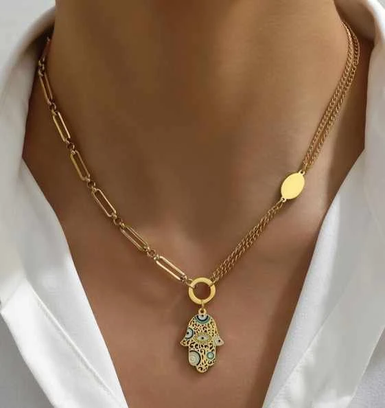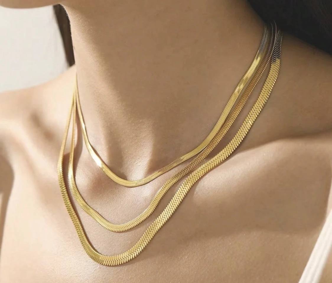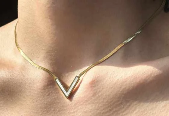 عقد باللون الذهبي بتصميم حرف V مقلوب