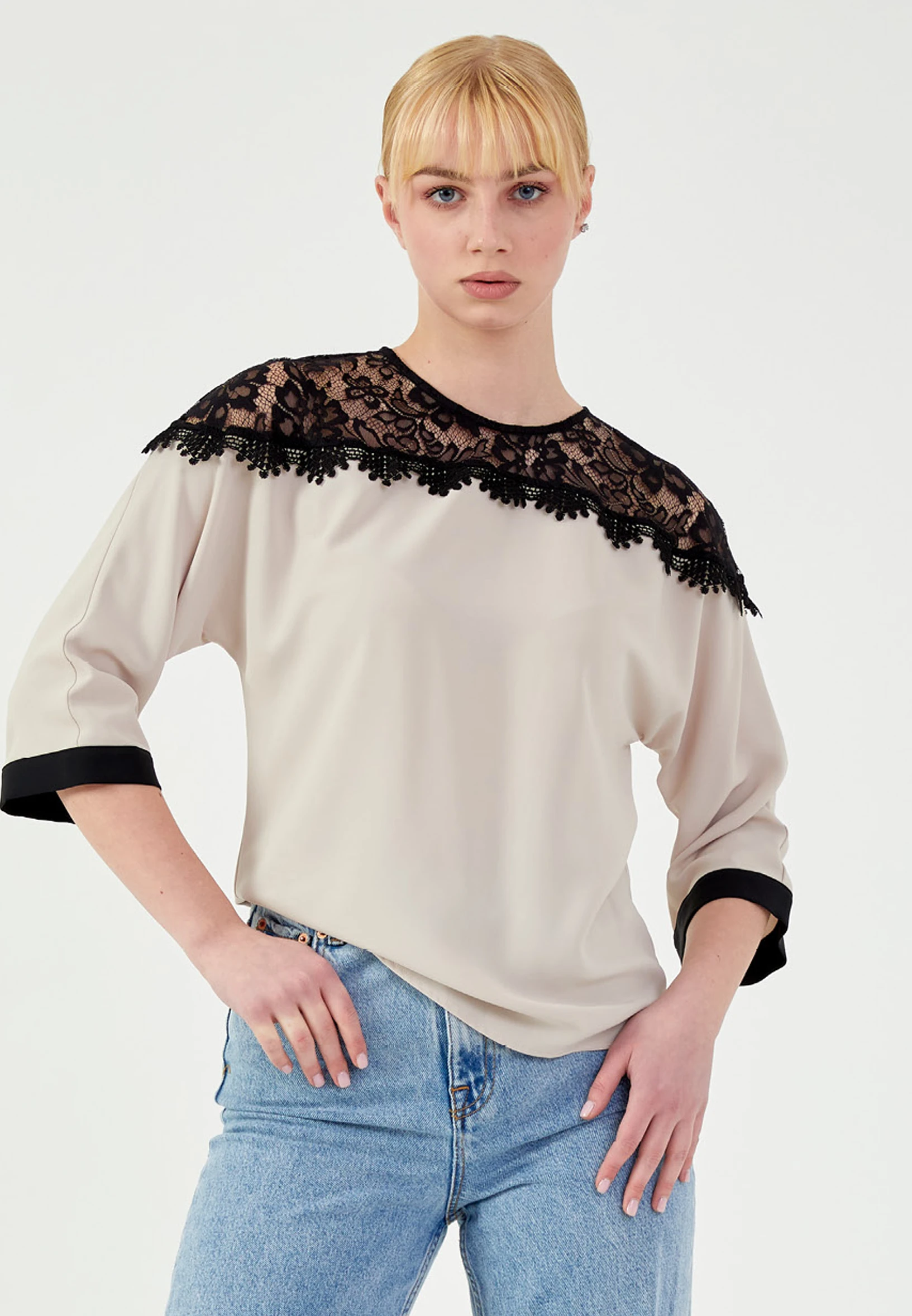بلوزة تركية بتفاصيل دانتيل أنيقة