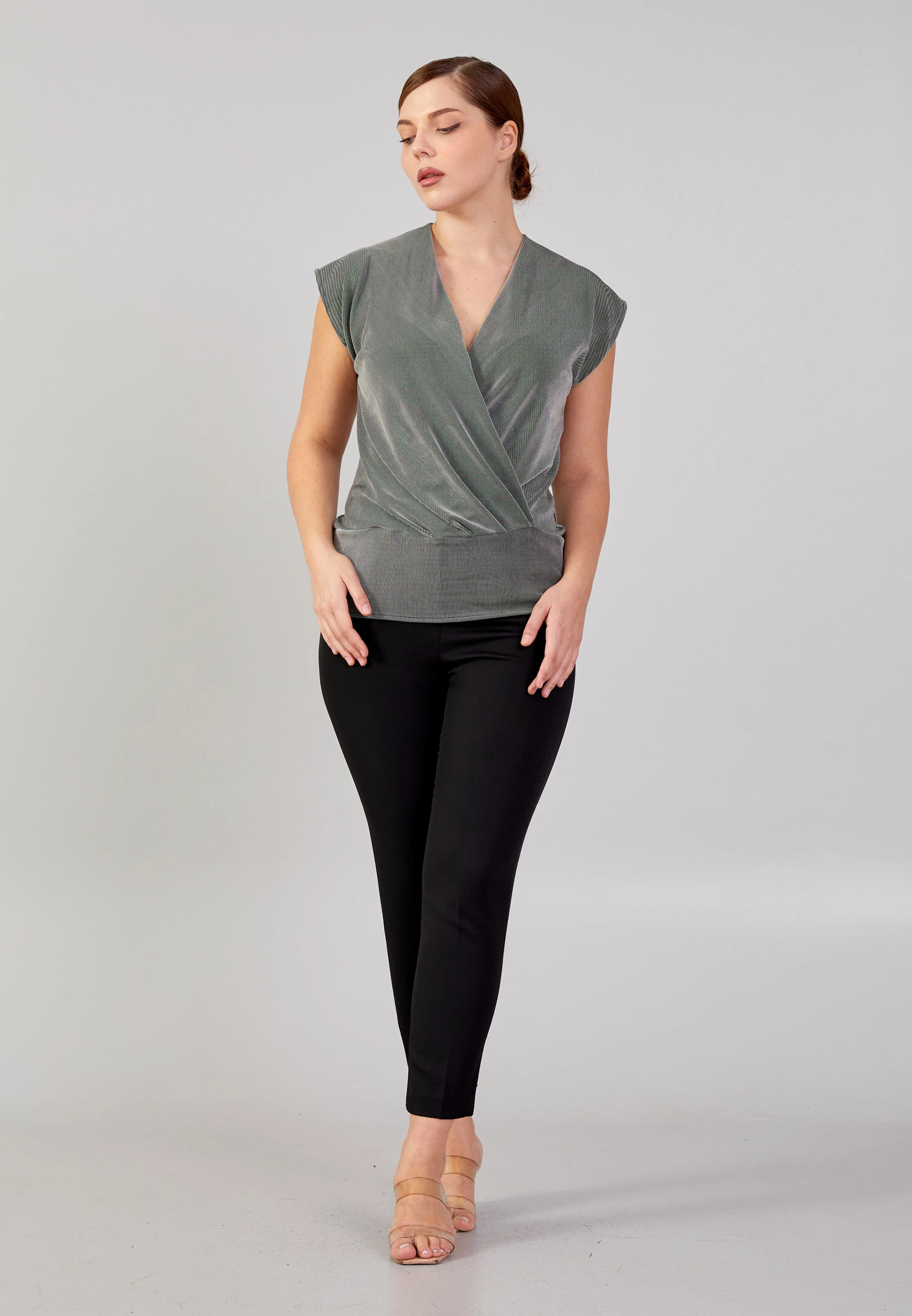 بلوزة ساتان تركية أنثوية بلون أخضر فاتح