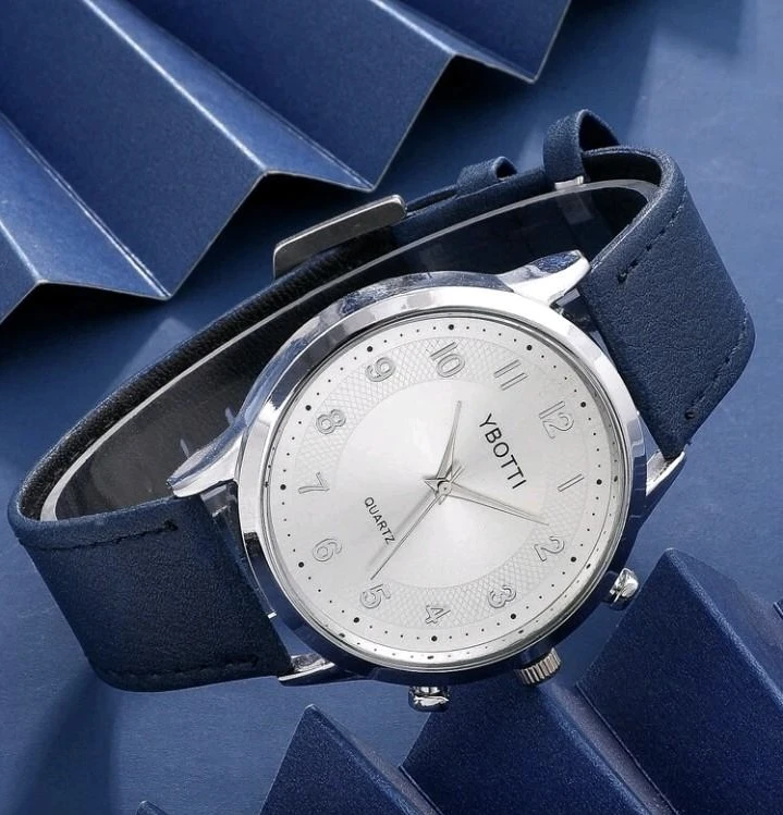 ساعة يد جلدية أنيقة بتصميم كلاسيكي وميناء فضي عربي