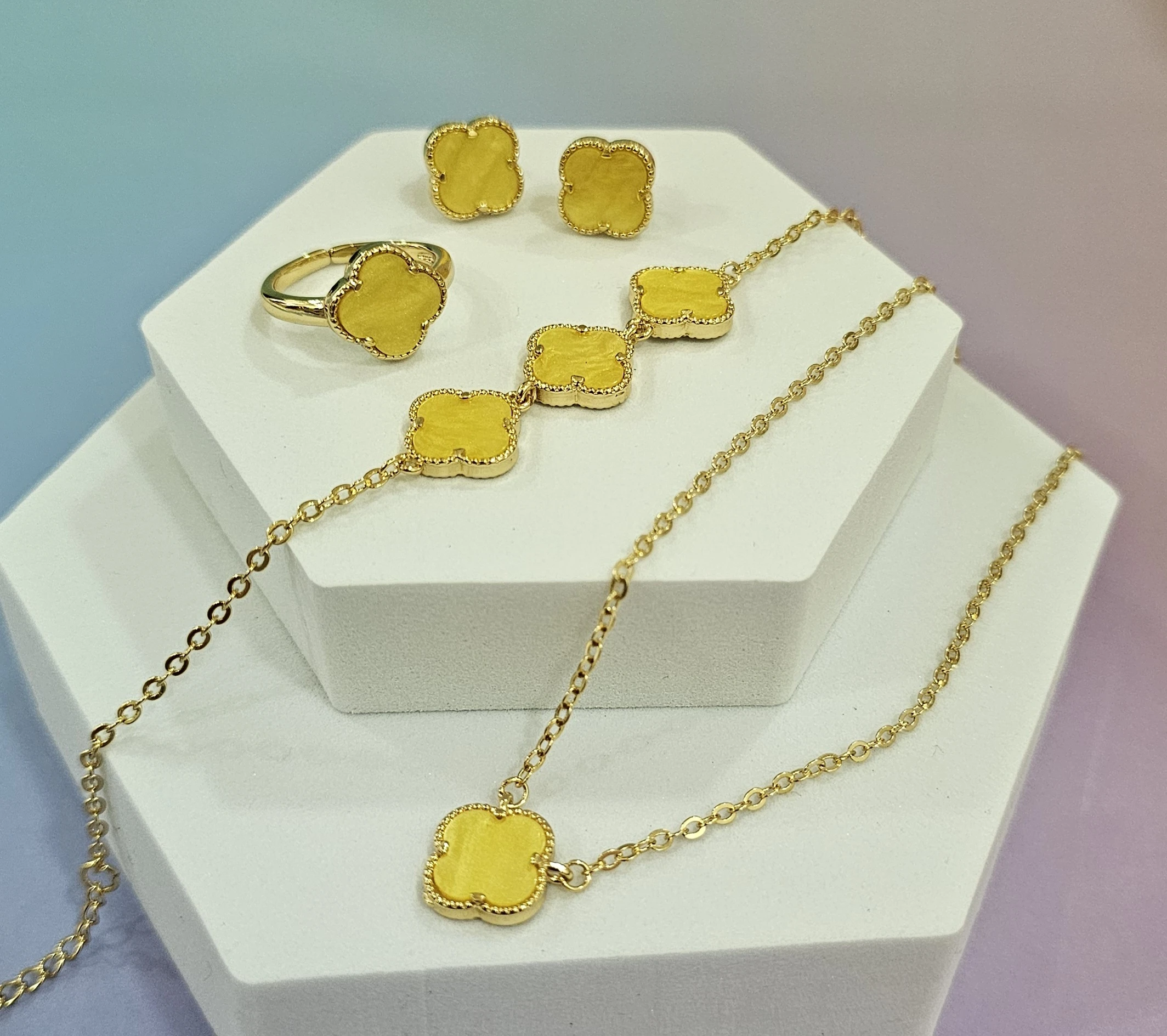 طقم اكسسوار ذهبي بأصفر