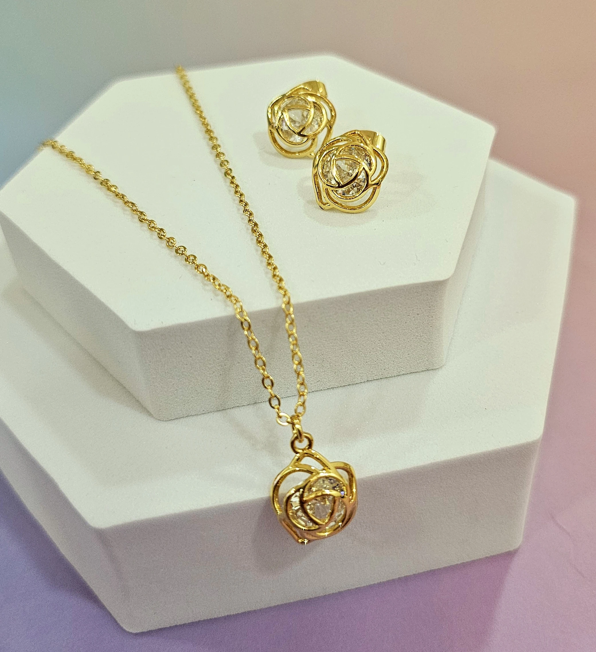 طقم اكسسوارات ذهبي على شكل ورده