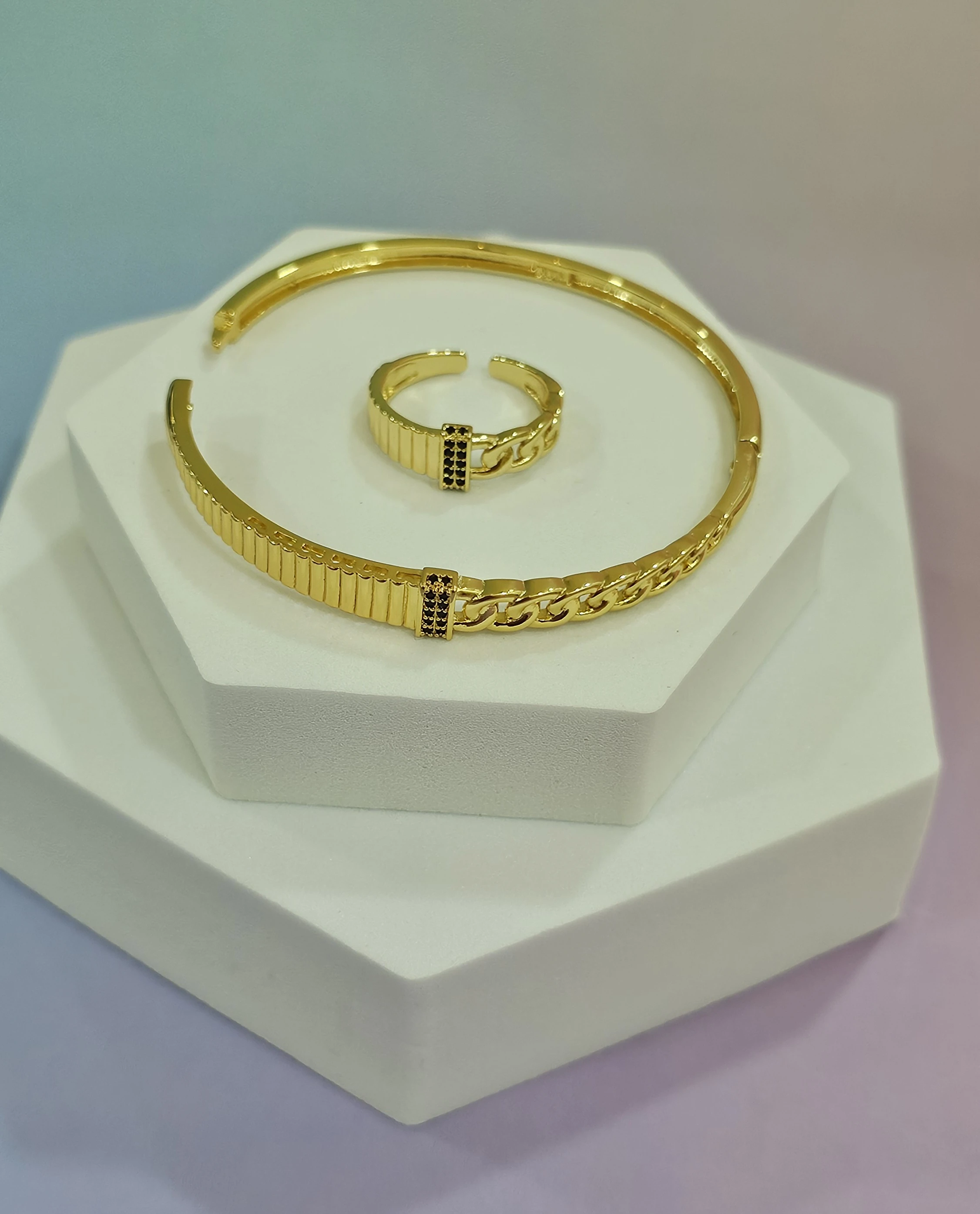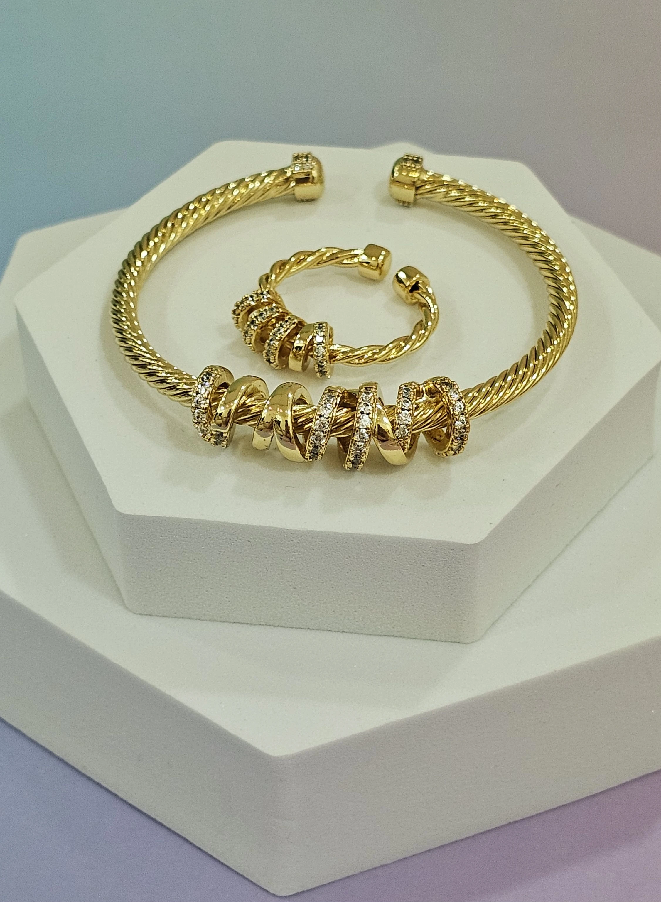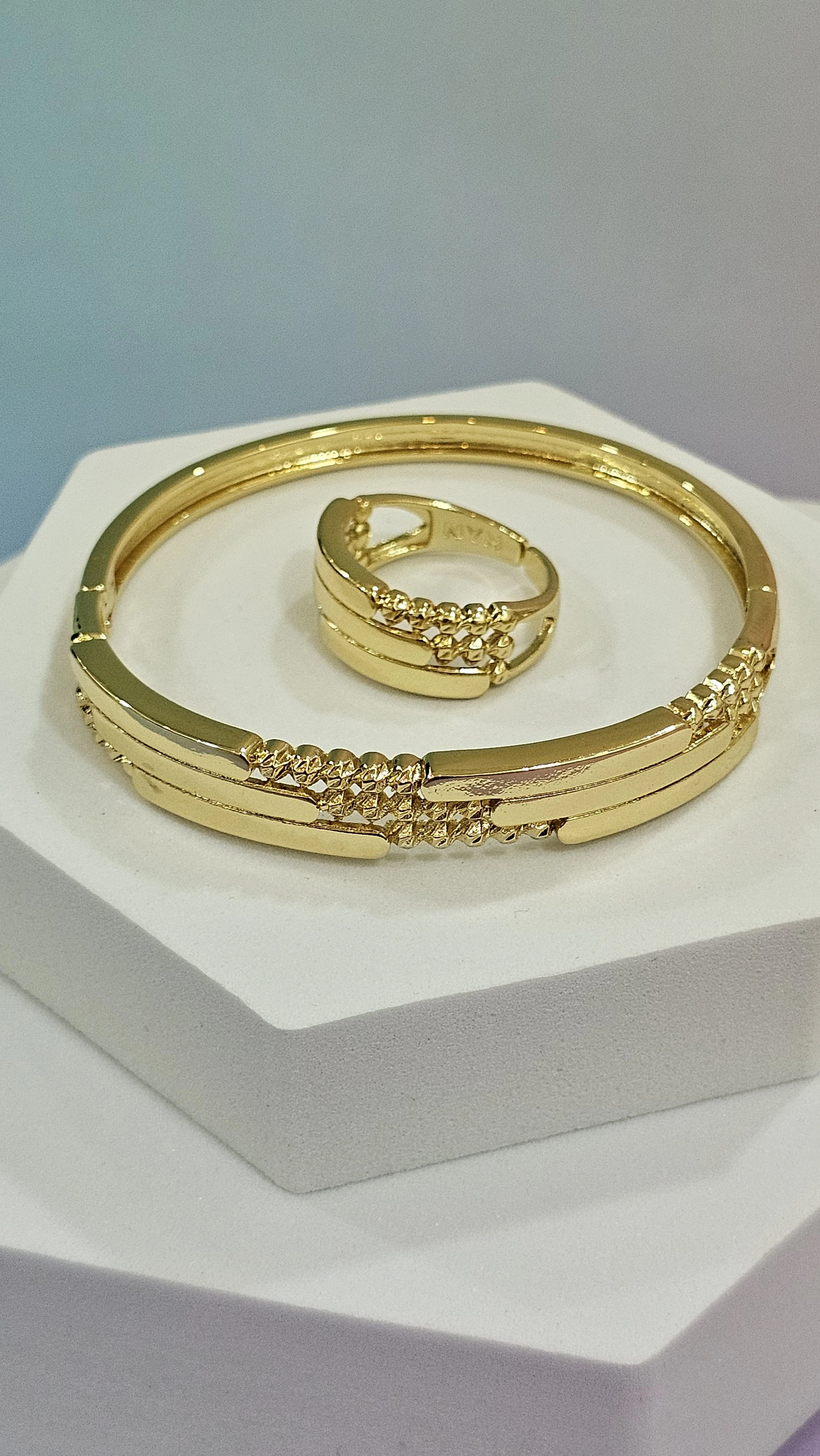 طقم اكسسوار ذهبي خاتم واسواره