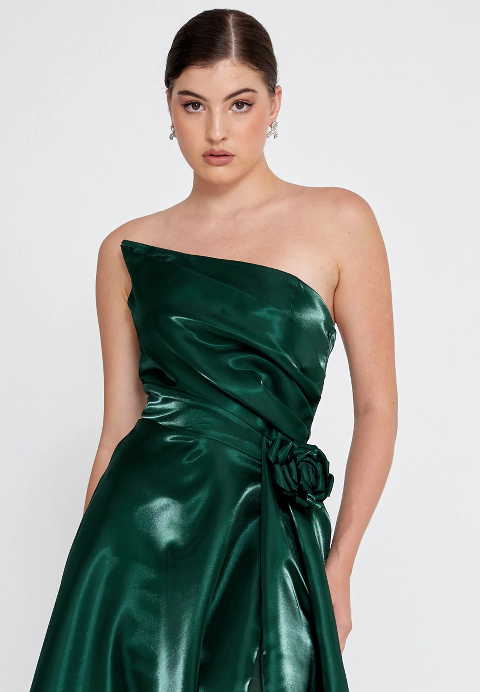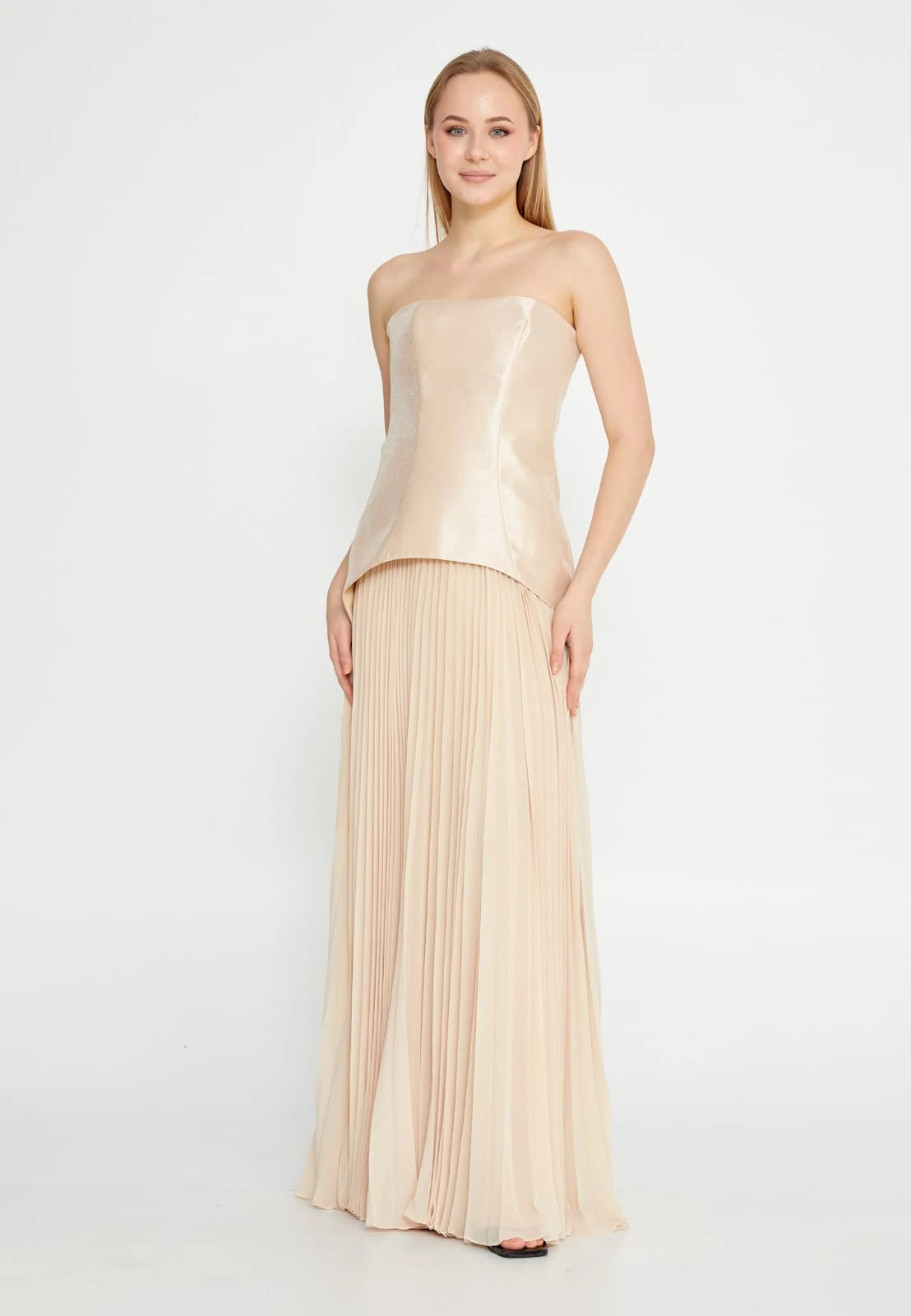 فستان مكشوف الكتفين بطيات من الصدر