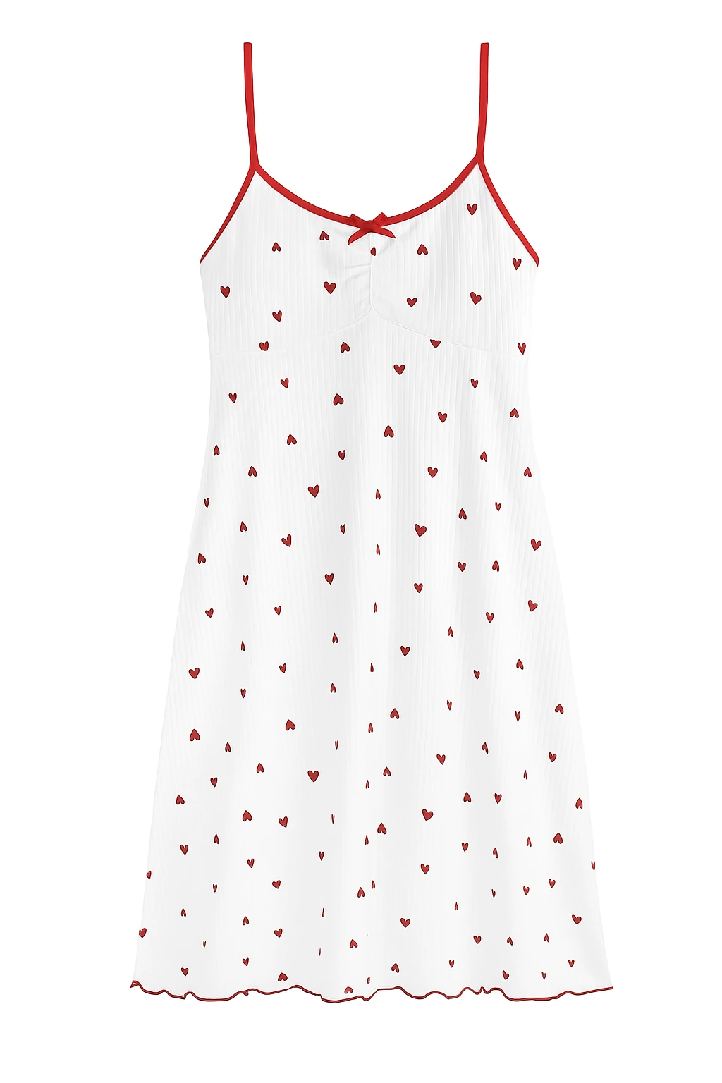 لانجري أبيض بنقشة قلوب حمراء وقصة ناعمة