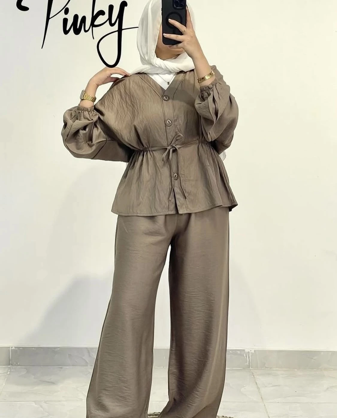 طقم محتشم بتصميم بيبلوم وبنطال واسع