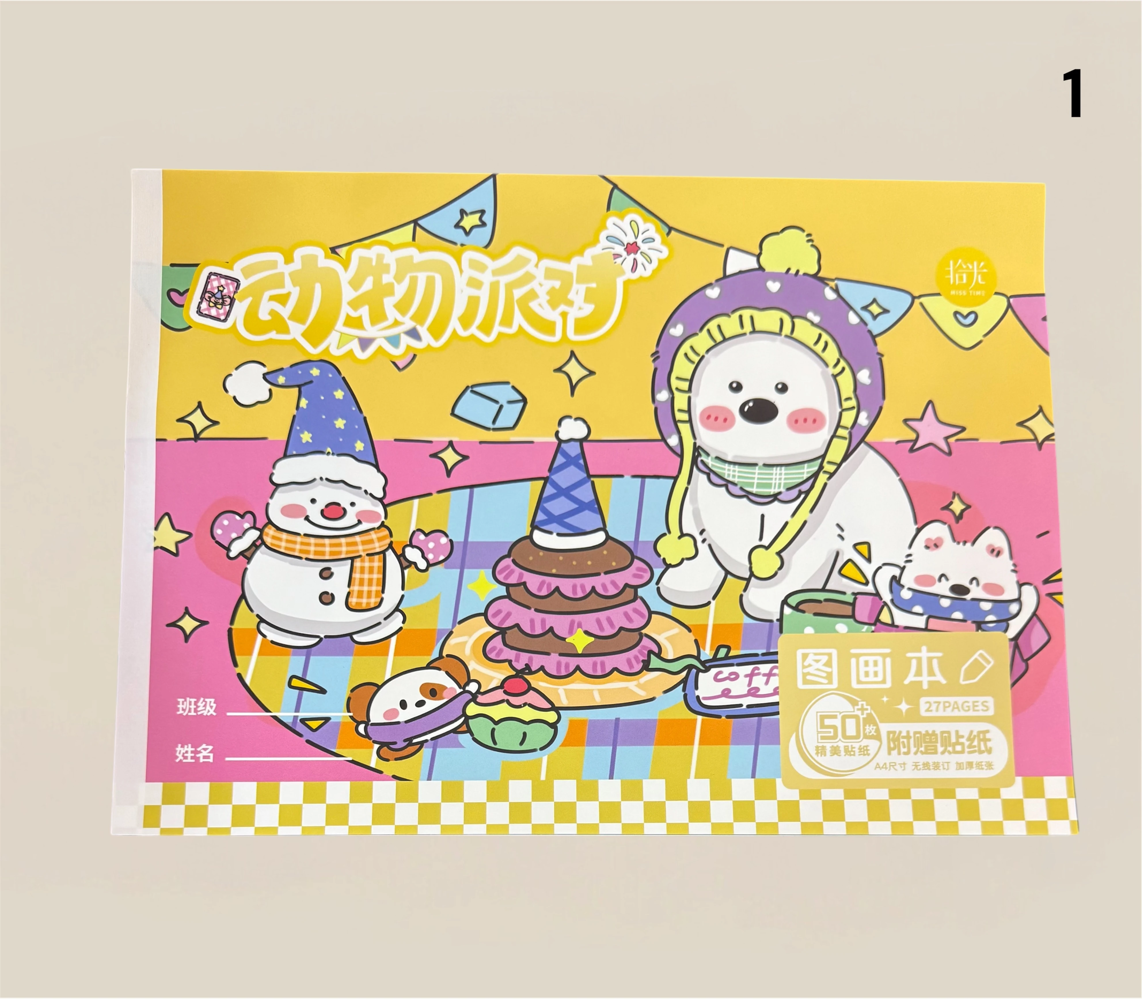 كراسة رسم وملصقات كرتونية – | 27 صفحة + أكثر من 50 ملصق