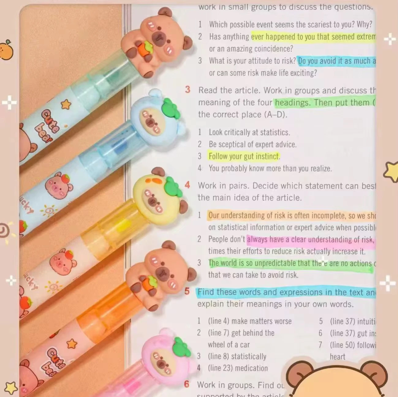 مجموعة أقلام تحديد باندا – 5 ألوان باستيل لطيفة بتصميم كرتوني