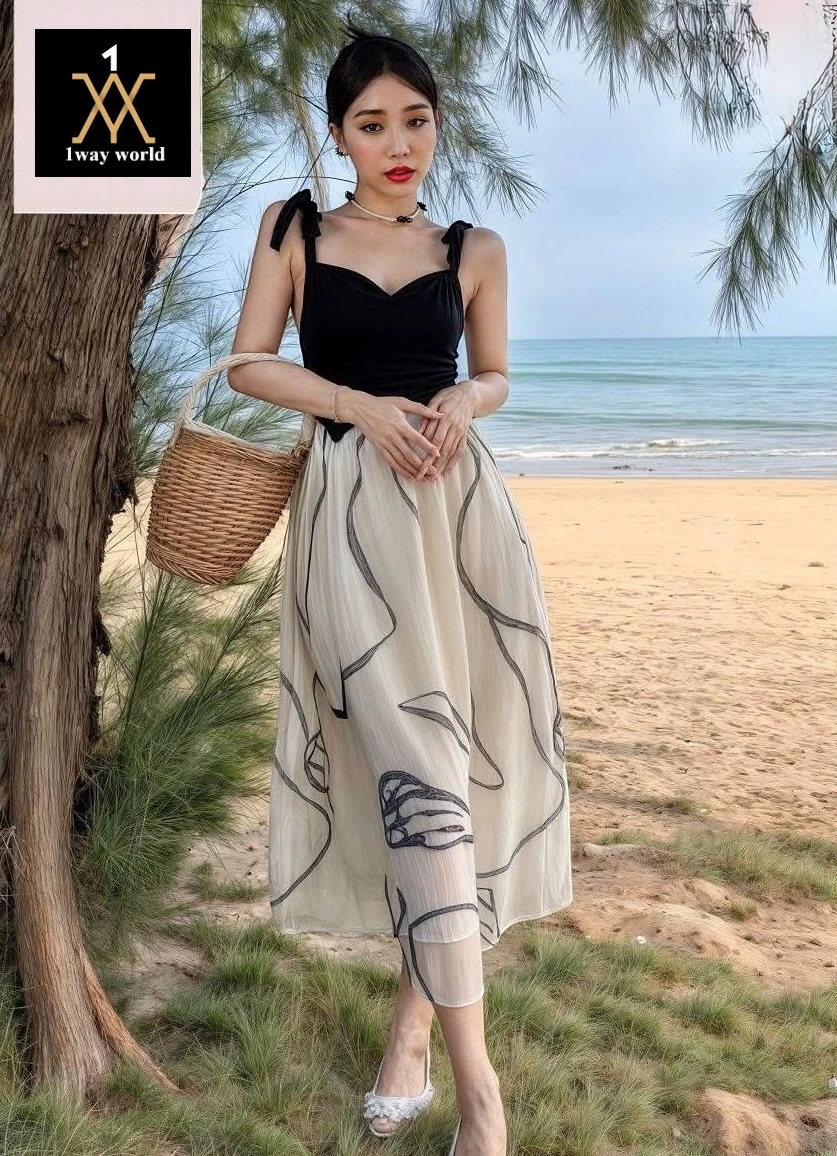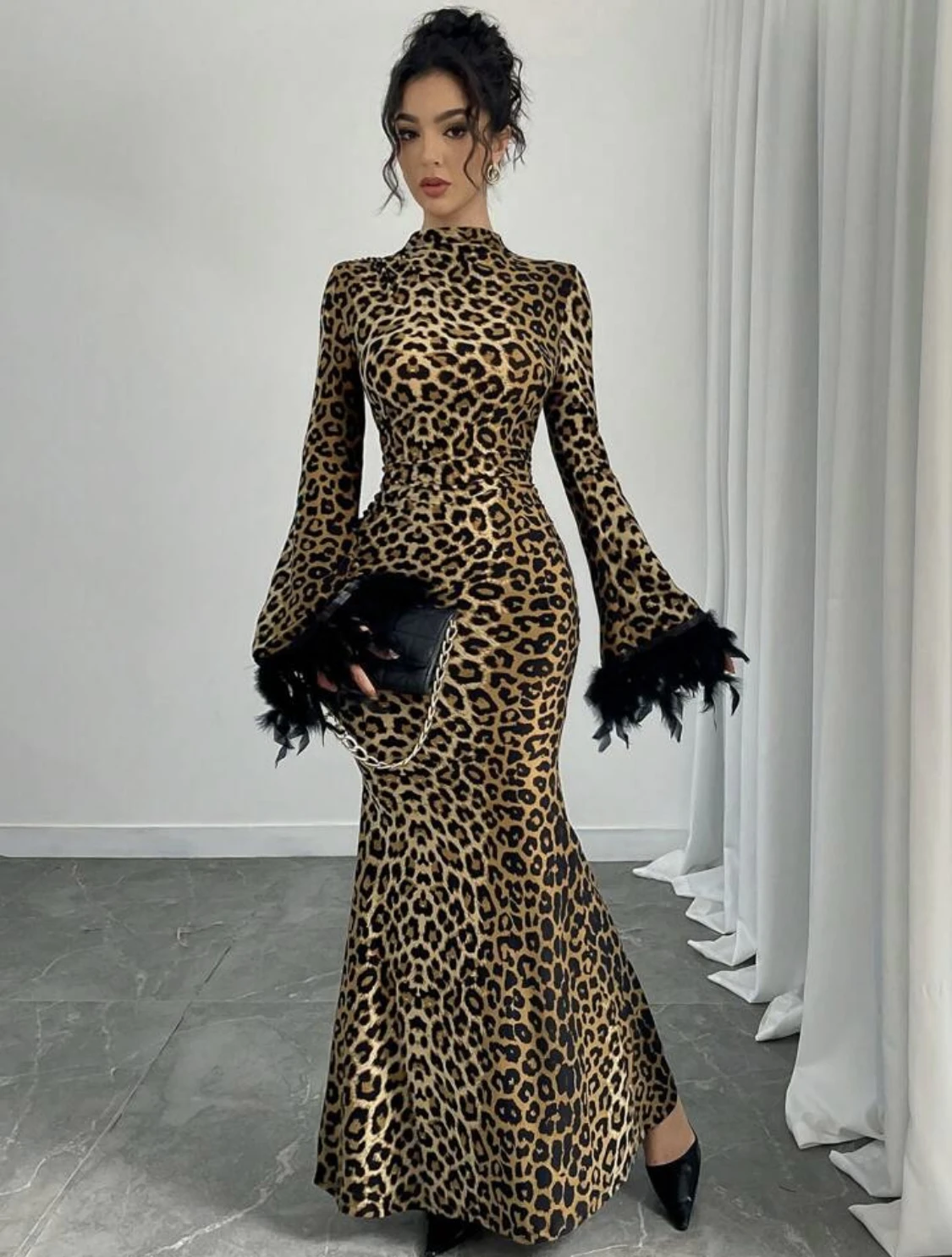 فستان ليوبارد بفتحة مربعة – أكمام شفافة