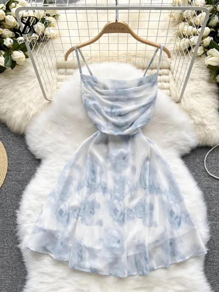 فستان بربطة كتف وقماش مرن بنقوش تجريدية