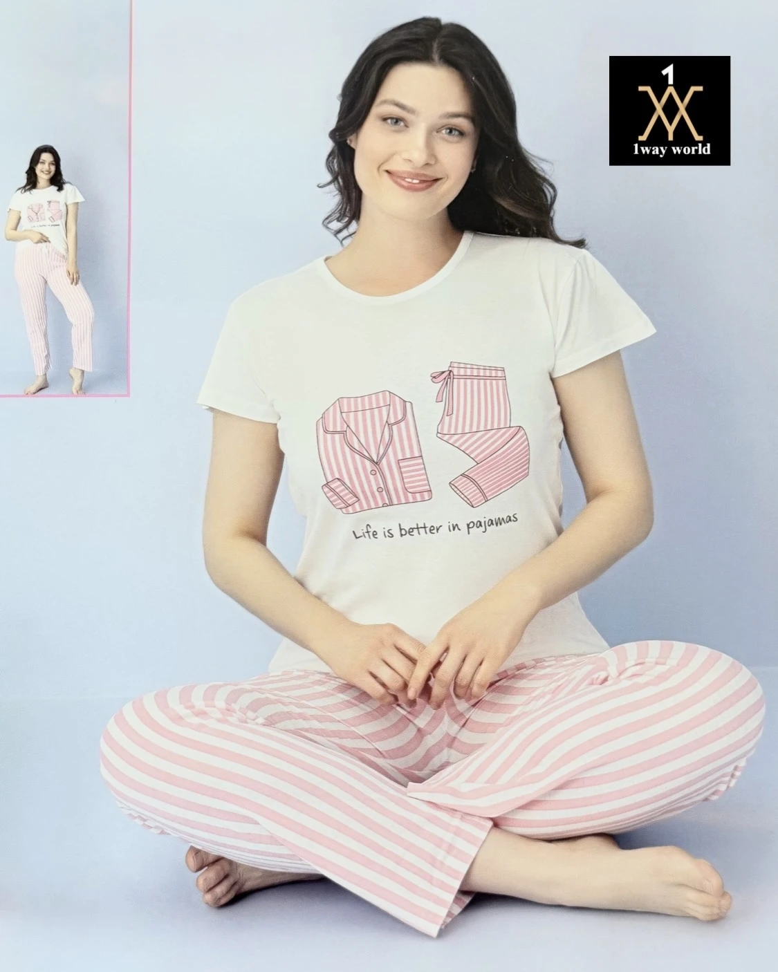 بيجاما نسائية بتصميم مميز– صناعة تركية من قطن ناعم