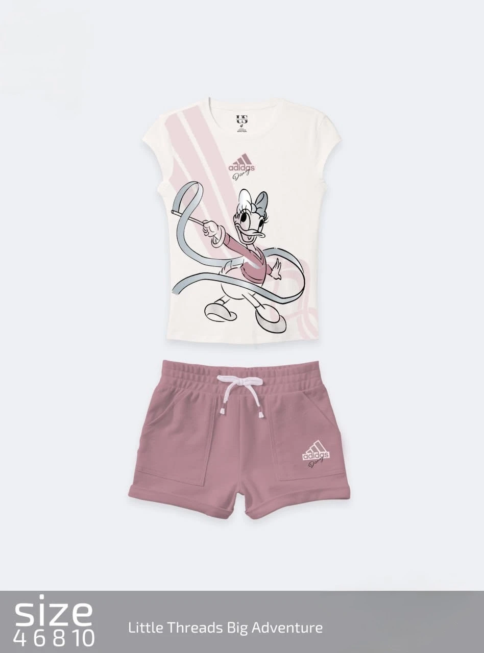 طقم بناتي قطني 100% وتصميم مريح للأطفال